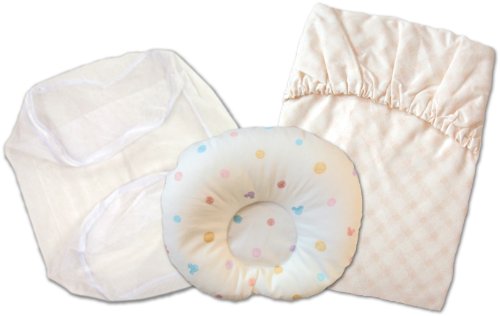 - (1)掛布団カバーリングカバー:105×130cm、(2)掛布団中芯:95×122cm、(3)肌布団カバーリングカバー:90×120cm、(4)肌布団中芯:84×115cm、(5)枕カバーリングカバー:26×42cm、(6)枕中芯:21×31cm、(7)固綿敷布団:70×120cm、(8)フィッティングシーツ:70×120cm、(9)ベビーまくら:約20×22cm、(10)洗濯ネット