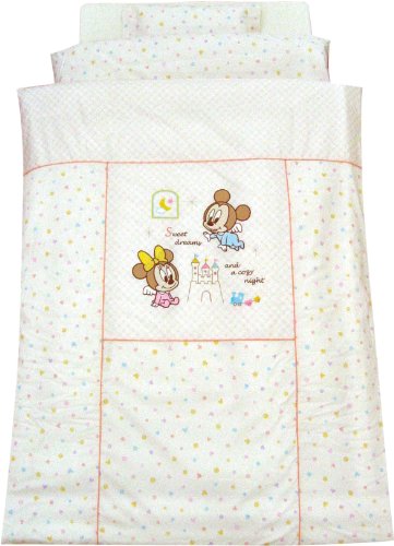 - 清潔感のある水彩画タッチのミッキーと水玉のプリント生地に加え、ミッキーのアップリケ刺繍はインパクト抜群! プリント生地にはヒアルロン酸加工していますので、保湿性のある、お肌にやさしいおふとんに仕上げました。
