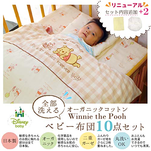 日本製 ベビー布団 10点セット ≪Winnie the Pooh≫ オーガニックコットン ダブルガーゼ 綿100% un doudou No. NZ1121