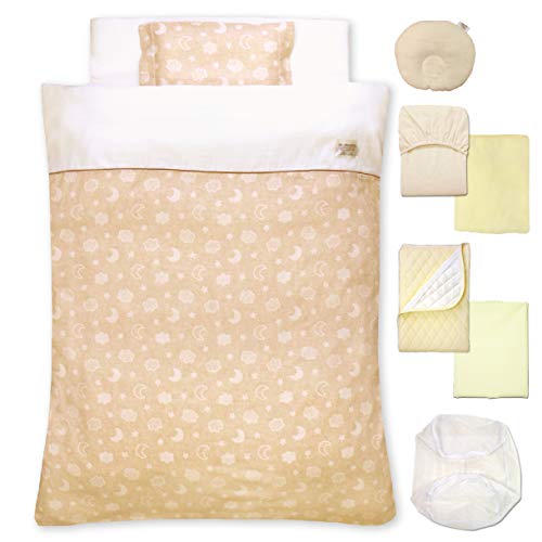 レギュラーサイズ 【月と雲】 ※内寸法 70×120cmのベビーベッド対応 <お肌に直接触れる部分は安心・安全の日本製(セット内容の一部は中国製)>