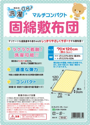 タックコーポレーション コンパクト固綿敷布団 水玉 70×120×3cm 生地:ポリエステル65%・綿35% 中綿:ポリエステル100% 10-63