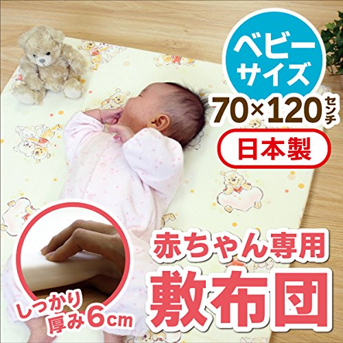- 中綿は厚み約6cmの日本製のポリエステル綿を使用しています。成長途中のあかちゃんの骨や筋肉は未発達ですが、適度な硬さと弾力性のある固綿敷布団でしっかりと体を支えるため、安心してご使用頂けます!大人が「少し硬いのでは?」と感じるくらいが、あかちゃんにはちょうどよい硬さです!