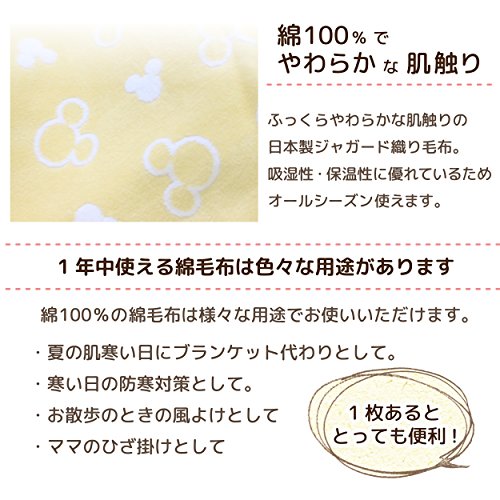 un doudou 【日本製】 ベビー 綿毛布 Mickey ≪85×115cm≫ 吸湿性・保温性に優れオールシーズン使用可能 No.NZ1336