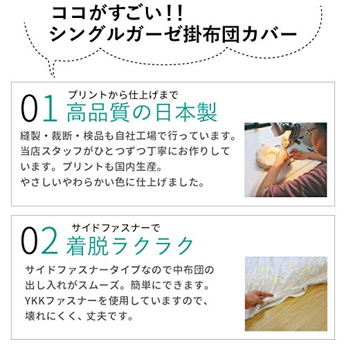吸水性と通気性に優れたガーゼ素材使用の布団カバーです。