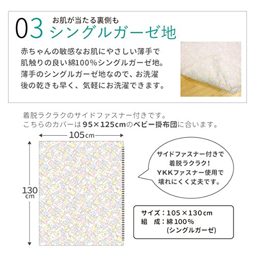 - 【サイズ】 105×130cm (ファスナータイプ)※約95×125cmまでのベビー掛布団に使用できます。