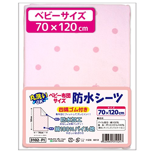 un doudou 防水おねしょシーツ ≪ベビー レギュラーサイズ 70×120cm≫ 四隅ゴム付き 〔選べる3色〕 No.3102 ピンク