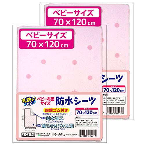 un doudou 防水おねしょシーツ ≪ベビー レギュラーサイズ 70×120cm≫ 2枚組 四隅ゴム付き 〔選べる6色〕 No.3102(2) ピンク