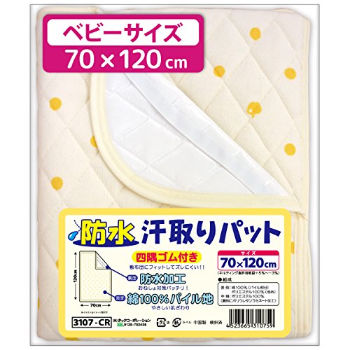- これ1枚で防水シーツと汗取りパッドの2役をこなす便利アイテムです。表面はふわふわ中綿入り、綿100%のキルトパイル地で水分をしっかり吸水し、裏面は防水加工を施しているので敷布団がぬれてしまうのをしっかりと防ぎます!