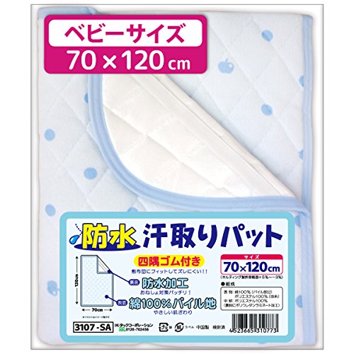 - これ1枚で防水シーツと汗取りパッドの2役をこなす便利アイテムです。表面はふわふわ中綿入り、綿100%のキルトパイル地で水分をしっかり吸水し、裏面は防水加工を施しているので敷布団がぬれてしまうのをしっかりと防ぎます!
