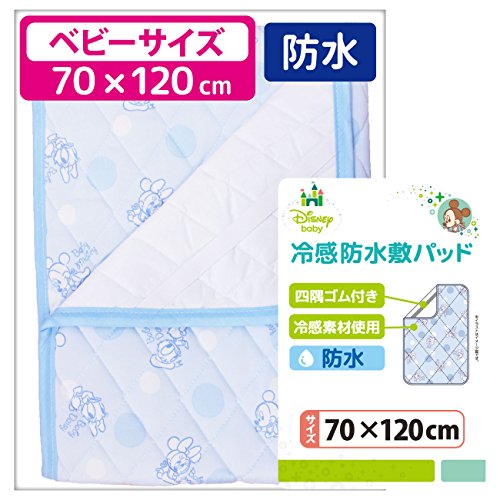 接触冷感 【防水敷パッド】 ≪ベビー レギュラーサイズ 70×120cm≫ MICKEY サックス (選べるディズニー4柄) 四隅ゴム付き un doudou No.NZ2823-B(SA)