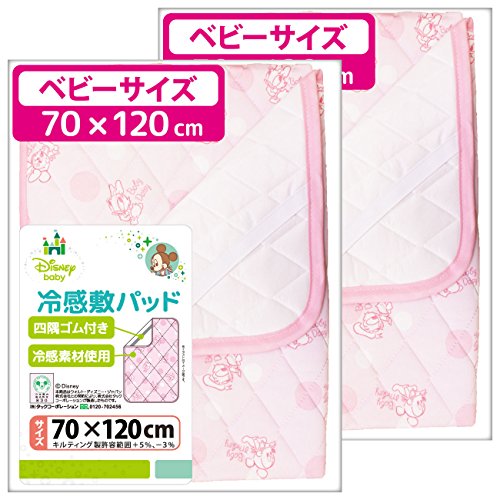 接触冷感 【敷パッド】 ≪ベビー レギュラーサイズ 70×120cm≫ 2枚組 MICKEY ピンク (選べるディズニー4柄) 四隅ゴム付き un doudou No.NZ2823-A(PI)(2)