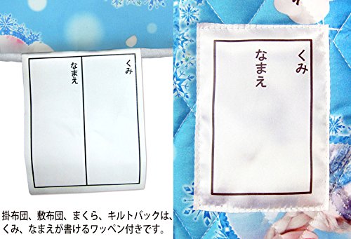 - [本体サイズ] 掛布団:79×119cm、敷布団:67×120cm、まくら:24×36cm、キルトバック:70×42×14cm