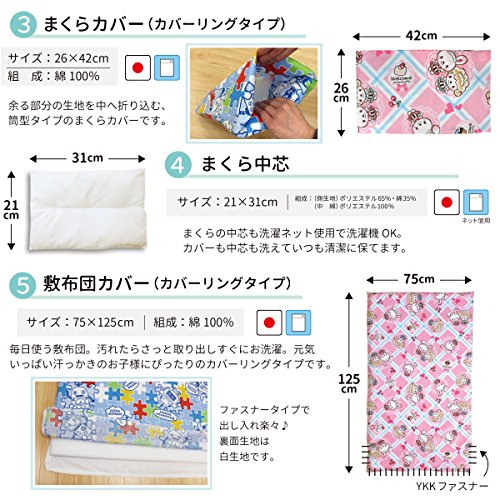 - カバーは高品質で安心の日本製、綿100%!日本でプリントを行っているのでカラフルできれいな仕上がりです。ここでしか買えない当店オリジナルデザインのお昼ね布団セットです!!