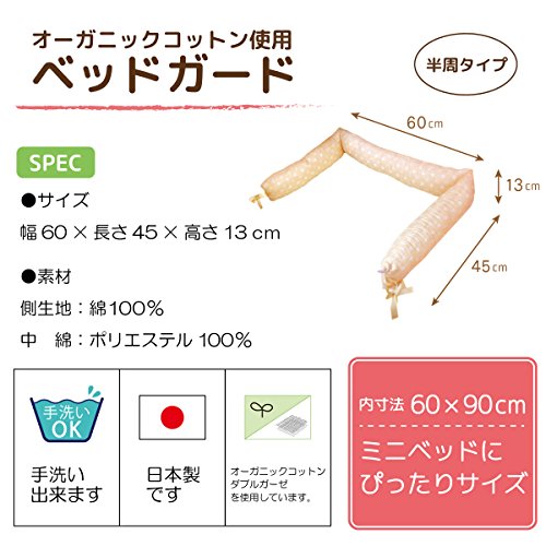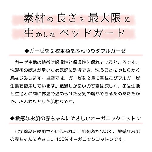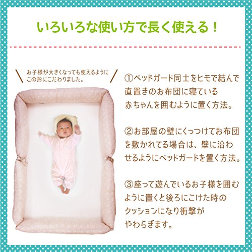 - たっぷり綿でふわふわ♪しっかりした厚みで赤ちゃんの頭や顔を守ります。ベッドフレームに結んで固定できるよう4箇所にヒモをつけています。