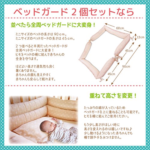 - 重ねて高さを変更!たっぷりの綿が入っていますので上に重ねることも可能です。ヒモを柵に結んでご使用頂けます。もう少し高さが欲しいときに便利♪少し動けるようになった赤ちゃんでも柵で頭や手をぶつけません。