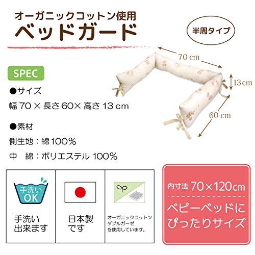 - たっぷり綿でふわふわ♪しっかりした厚みで赤ちゃんの頭や顔を守ります。ベッドフレームに結んで固定できるよう4箇所にヒモをつけています。