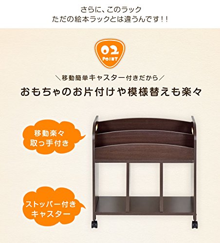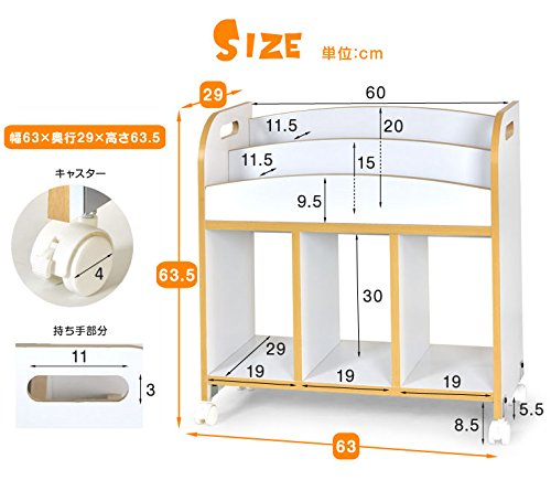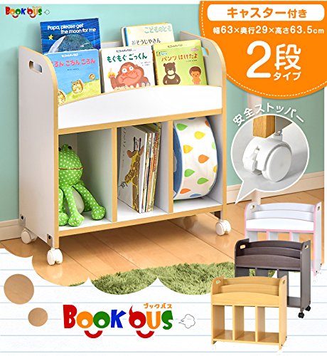 タンスのゲン BabyDays(ベビーデイズ) 絵本ラック 2段 キャスター付き ホワイト×ナチュラル 33600002 01