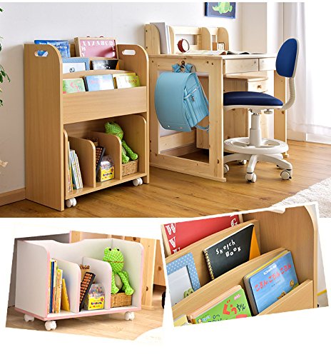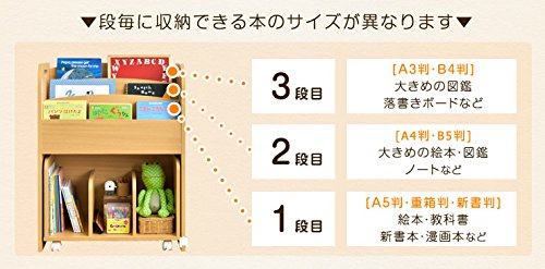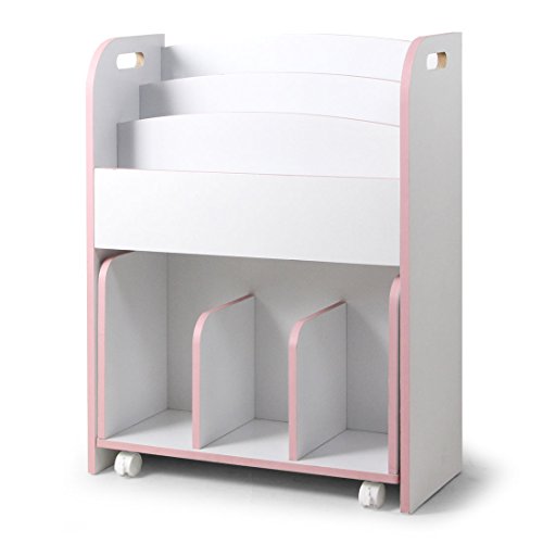 タンスのゲン 絵本ラック 3段 キャスター付き ホワイト×ピンク 33600004 01