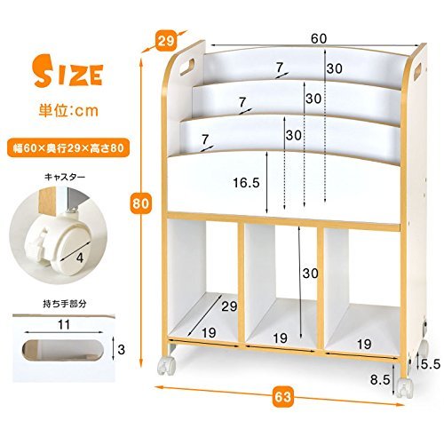タンスのゲン BabyDays(ベビーデイズ) 絵本ラック 3段 キャスター付き ダークブラウン 33600001 13