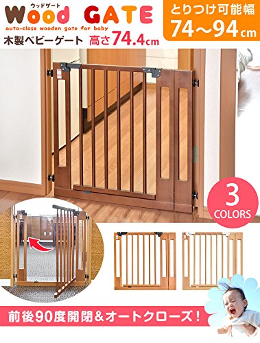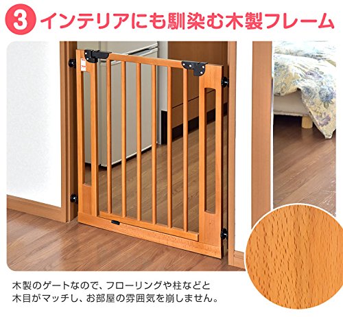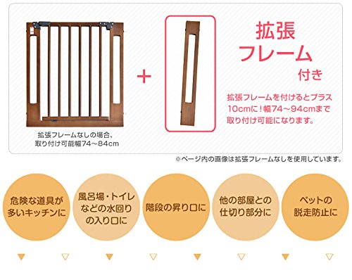 タンスのゲン 木製ベビーゲート 拡張フレーム オートクローズ機能 付き 設置幅74~94cm ライトブラウン 30500005 LB