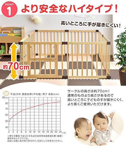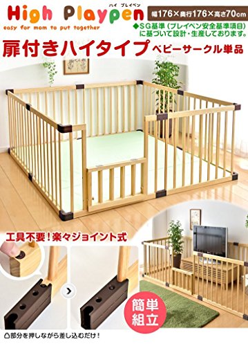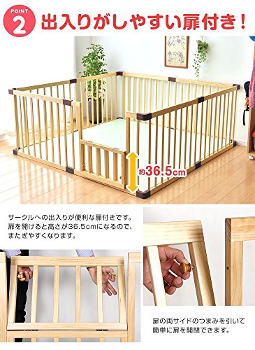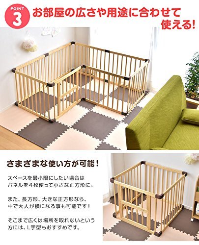 タンスのゲン 扉付き ハイタイプ ベビーサークル 木製 ジョイント式 高さ70cm 8枚セット ブラウン 30600005 03