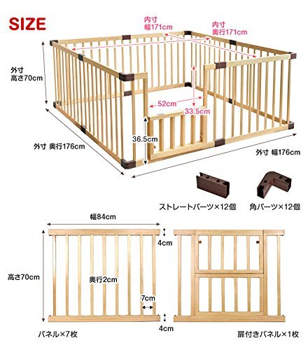- [全パネル使用時]外寸:(約)幅176cm×奥行176cm×高さ70cm / 内寸:(約)幅171cm×奥行171cm×高さ70cm