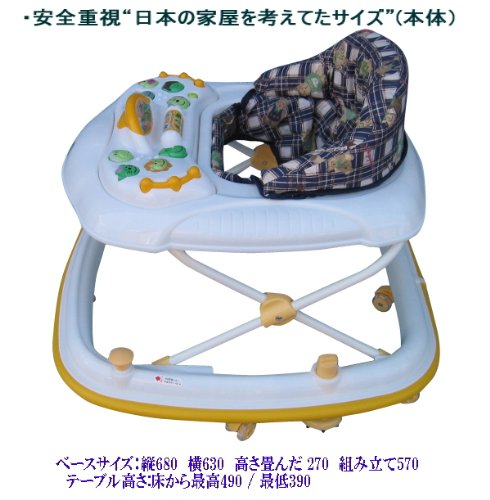 ●トイテーブルは取り付け取り外しが簡単でお食事テーブルにもなり8種類の動物の泣き声とICメロディーが流れます。●赤ちゃんの成長に合わせて5段階の高さ調節 ●他にない特大ソフトバンパーなので壁や家具などにぶつかっても衝撃を吸収しますので傷が付きにくくなっております。●消音キャスター8個仕様なので走行音が静かで床に傷が付きにくいです。●歩行器の動きを止める後部2箇所特大凹凸スットパー付き ●折りたたみ手挟み防止機能付き ●単3電池2本使用(別売り)●シートの差込割りピンが隠れてある場合がありますので確認してください。
