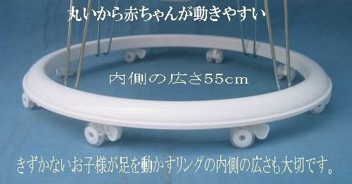★創業50年日本で生まれた丸型歩行器製造メーカーはダイコーだけです。★テレビ東京 2017年8/11所さんのそこんトコロSP・9/12よじごじDaysで日本で唯一歩行器メーカーとして弊社が紹介されました。 ★当社中国製歩行器コピーが出回っておりますのでご注意ください。 ★日本産業省基準商品 ★対象年齢 7ヶ月から15ヶ月頃までです。 ★赤ちゃん本位の機能性、実用性にとんだ座席が中心の丸型安全設計です。 ★使用時高さ40㎝ 巾65㎝ 奥行65㎝ ★折り畳めばコンパクトな厚さ9cmになります。 ★お食事などが楽な、まろやかワイドテーブル。 ★高さ調節は座席シートの股ベルトコキで調節します。 ★出荷は原則として注文日1~2日後になります。但し土日祝日は休業の為、出荷が遅れることがありますので、ご了承下さい。 ★部品の取り寄せについてはお問い合わせ下さい。 ★お客様のご都合により返品に際しては商品お届けの際の当社負担の送料と弊社への返品送料(お客様元払い)をご負担いただいております。 ★何卒ご了承お願いいたします。 ★お客様送料ご負担料金 北海道¥1800 東北¥1100 関東¥1000 関西¥1100 中国¥1200 北陸¥1100 四国¥1600 九州¥1800沖縄¥2500