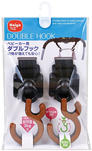 ベビーカー用 ダブルフック (ブラック×ブラウン)