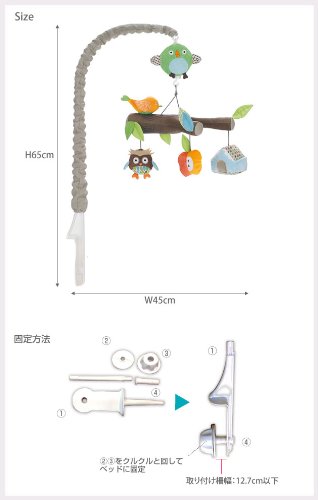 備考:☆ベビーベッドの柵の厚みに合わせて、簡単に取り付けが可能なモビールです。