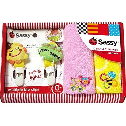 プレゼント・ギフトに最適。カラフル・かわいい・実用的!サッシーのミニタオル2p&ビブクリップセット!