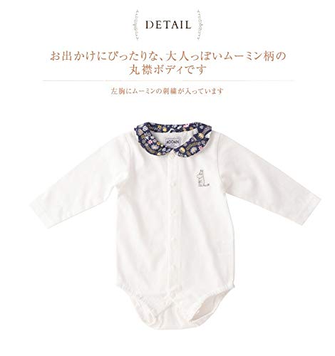 ・お出かけにぴったりな、大人っぽいムーミン柄の丸襟ボディです。 左胸にムーミンの刺繍が入っています。