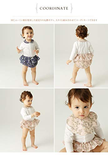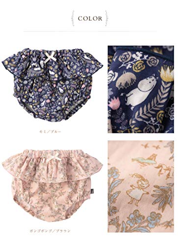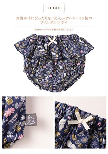 ・お出かけにぴったりな、大人っぽいムーミン柄のフリルブルマです。 綿100%のガーゼ素材を使用しています。