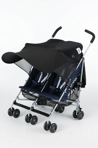 • ベビーカーをすっかり覆う、路面からの照り返しも防ぐサンシェイドデラックス版。ツインも登場!