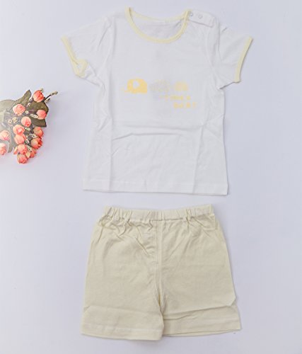 iTimes子ども肩開きセット ホームウェア 赤ちゃんパジャマ夏用 リラックスセット やわらかい肌触り 綿100% (73, 黄)