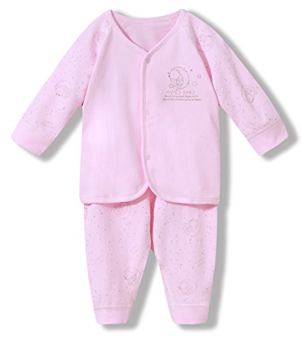 2016年最新型 iTimes 子どもルームウェア 秋冬服 綿100% 部屋着 優れた通気性 前開きセット 肌着 (80cm, ピンク)