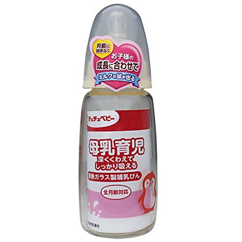 チュチュベビー 耐熱ガラス製 哺乳びん シリコーンゴム製 母乳育児乳首付 150ml
