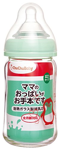 チュチュベビー 広口タイプ 耐熱ガラス製哺乳びん 160ml