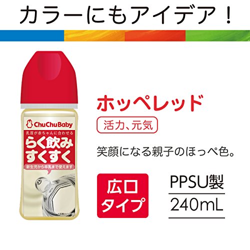 チュチュベビー らく飲み哺乳びん 広口タイプ PPSU製 240ml (ホッペレッド)
