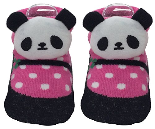 ツイン ベビーソックス パンダマスコット付 11~13cm ピンドット靴 ローズ
