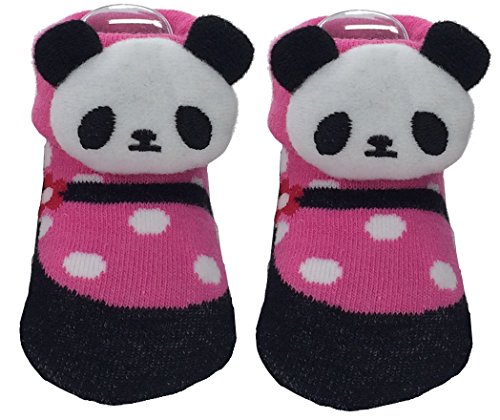 ツイン ベビーソックス パンダマスコット付 11~13cm ドット靴 ローズ