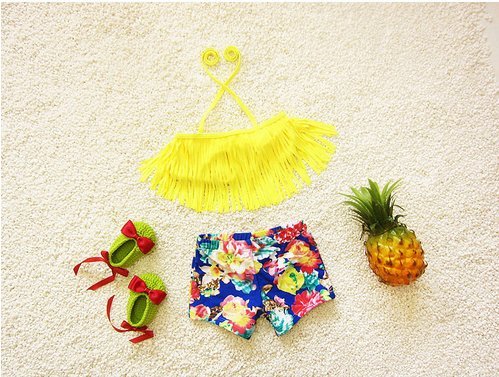 ツバメ--屋 ベビー水着 女児水着 ビキニ スイミングウェア キッズ水着 子供用 非常にオシャレ、2点セット (M)