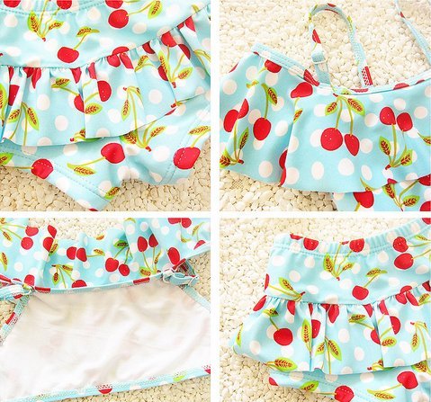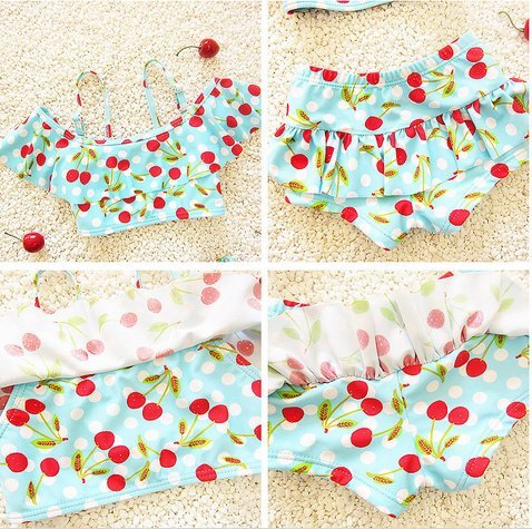 ツバメ--屋 ベビー水着 女児水着樱桃 ビキニ スイミングウェア キッズ水着 子供用 非常にオシャレ、樱桃トップス、パンツ2点セット (XXL, ブルー)