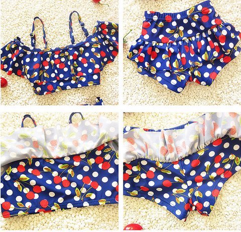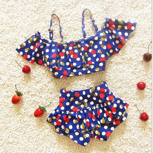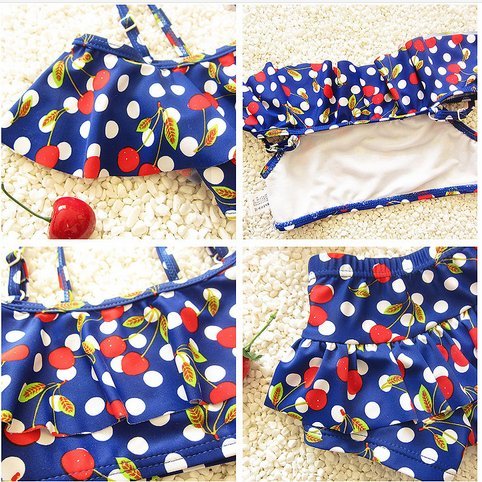 ツバメ--屋 ベビー水着 女児水着樱桃 ビキニ スイミングウェア キッズ水着 子供用 非常にオシャレ、樱桃トップス、パンツ2点セット (M, ダーク ブルー)