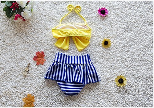 ツバメ--屋 ベビー水着 女児水着 ビキニ スイミングウェア キッズ水着 子供用 非常にオシャレ、トップス、パンツ2点セット (L, イエロー)