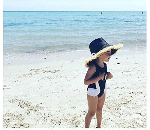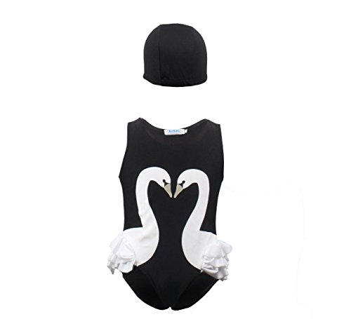 ツバメ--屋 ベビー水着 女児水着 ビキニ スイミングウェア キッズ水着 子供用 スイムキャップ付き 女の子 セパレート レースフリル スイート ガールズ 2点セット (110, ブラック)