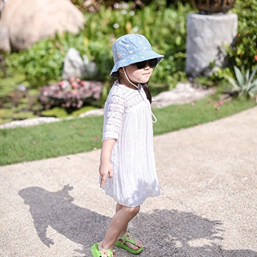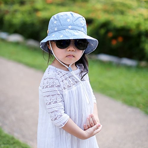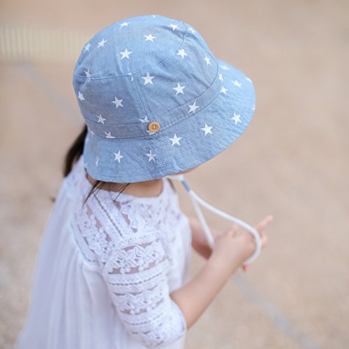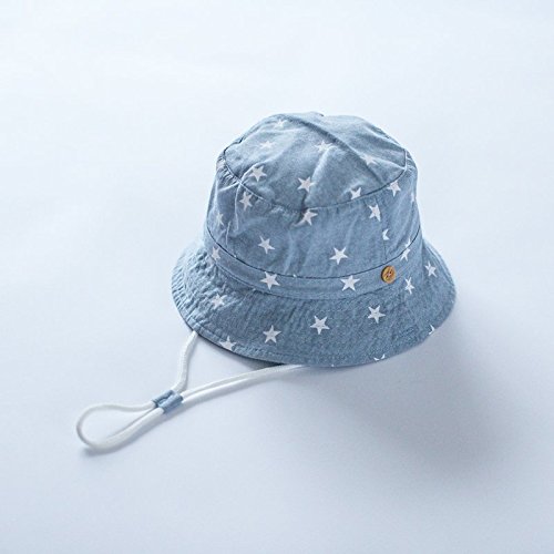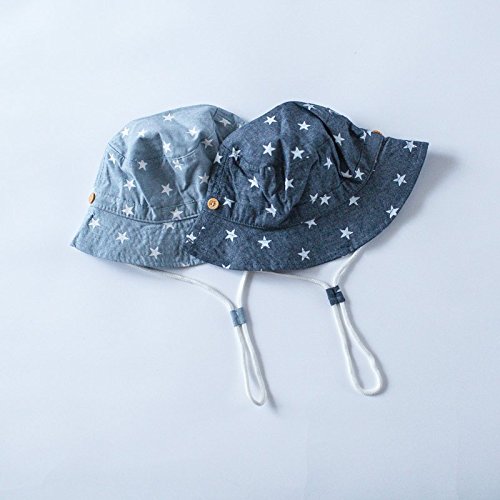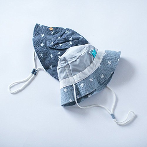 ツバメ--屋 ベビー用ハット つば広 赤ちゃんキャップ キッズ 帽子 子供サンバイザー フィッシャーマンハット 星柄 ジーンズ風 女の子 男の子 男女児 紫外線 UVカット (48, ブル-)