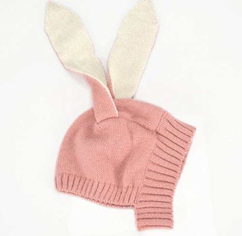 ツバメ--屋 ニット帽子 キッズ 赤ちゃん用 ベビー 兎耳 ハット 子ども 女の子 男の子 可愛い 防寒 (ピンク)