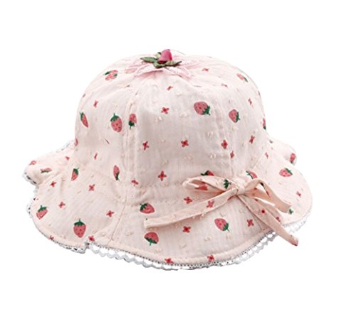 ベビー用ハット つば広 赤ちゃんキャップ サファリハット キッズ 帽子 子供サンバイザー フィッシャーマンハットドット 可愛花柄 女の子 男女児 紫外線 UVカット 日よけ 日焼け止め (ピンク)