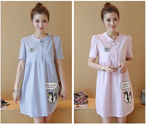 ツバメ--屋 春夏 マタニティ ワンピース チュニック トップス 外出着 妊婦服 ワンピース (XL, ブル-)